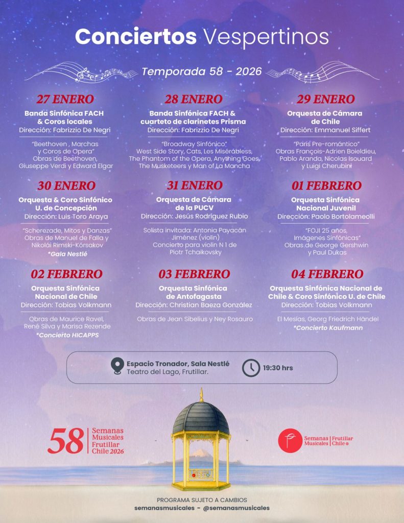 Ya está disponible el programa de la temporada 58 de las Semanas Musicales de Frutillar. Revisa todos los conciertos de mediodía y Vespertinos acá: