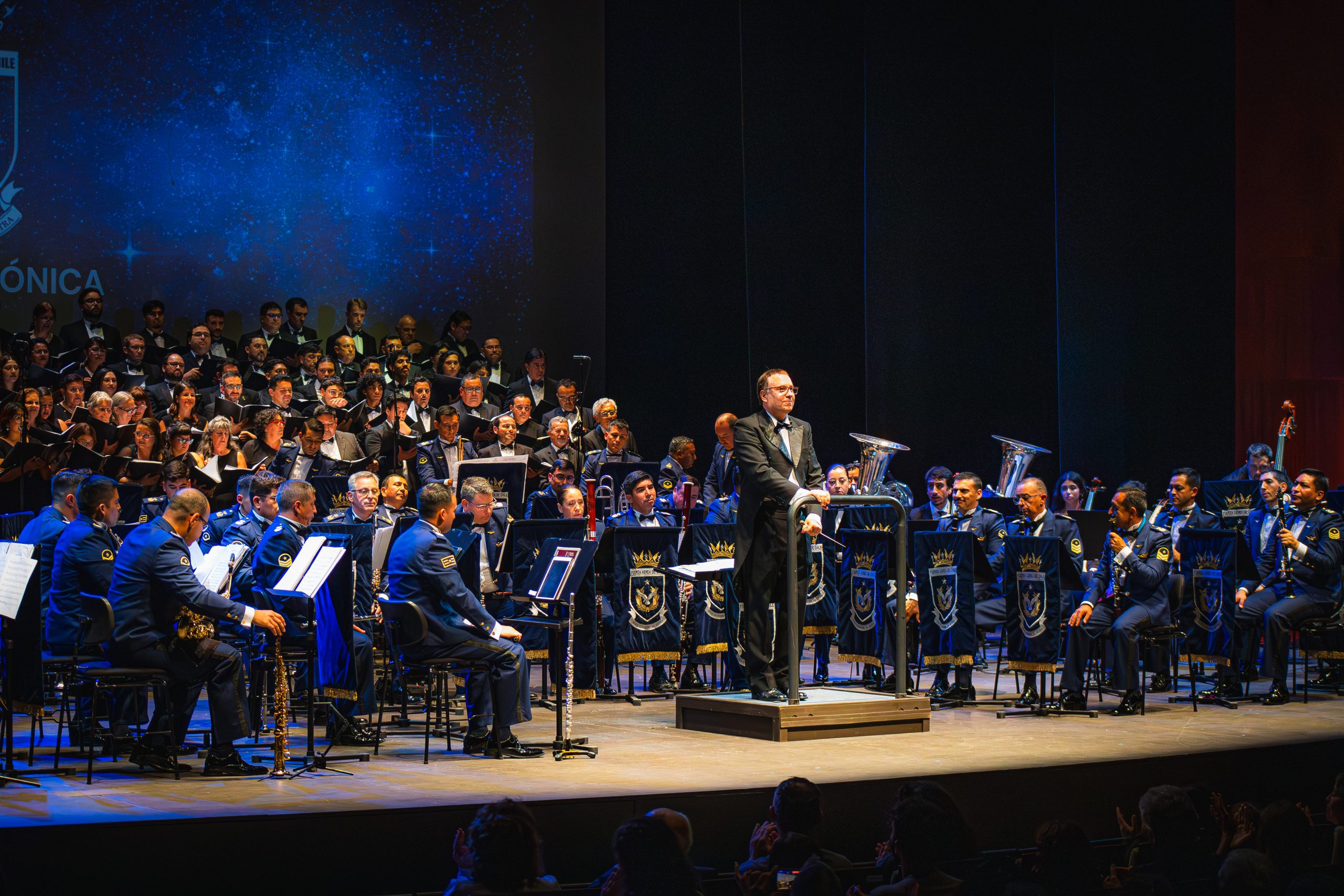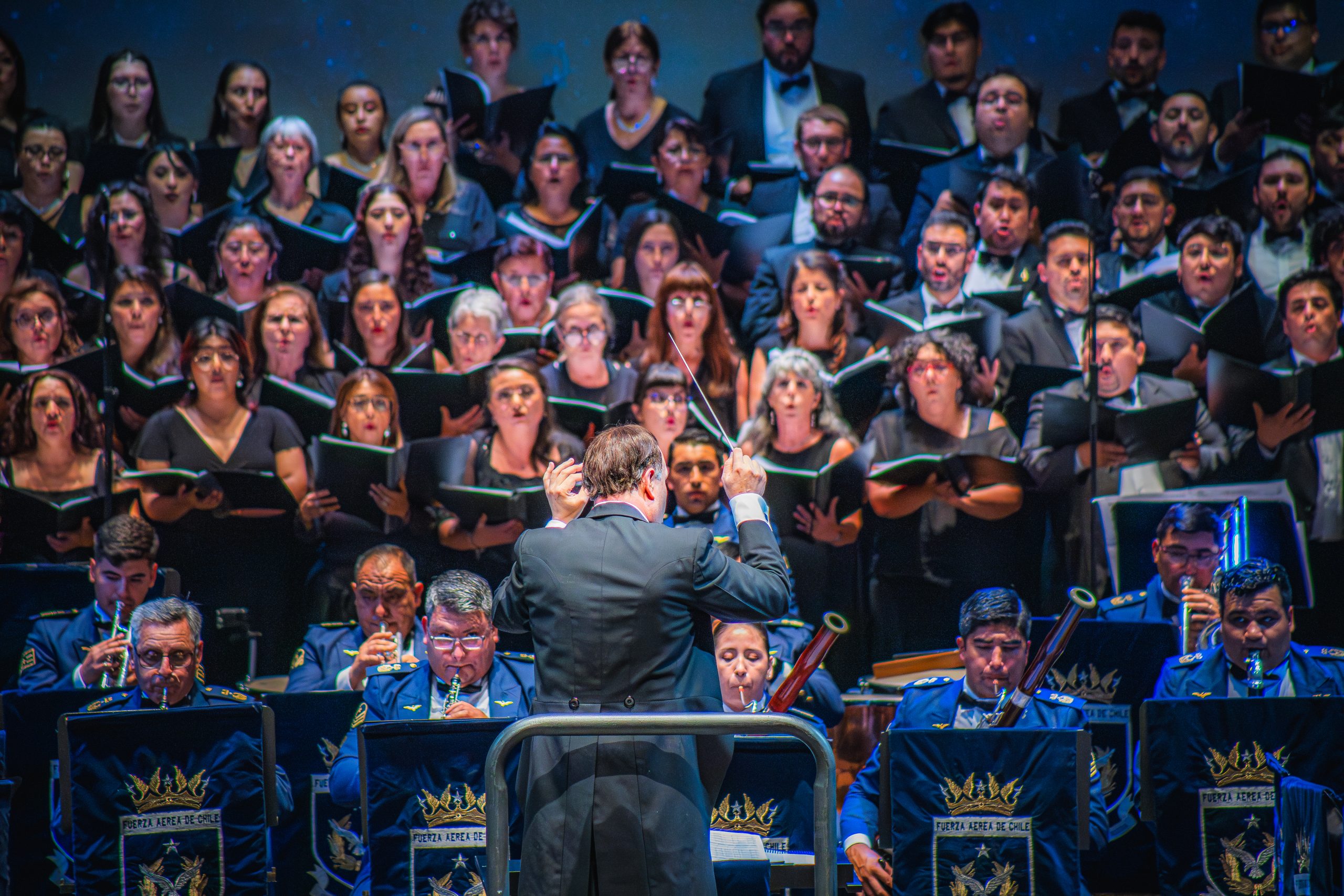 El concierto inaugural estuvo a cargo de la Banda Sinfónica de la Fuerza Aérea de Chile, dirigida por el maestro Fabrizzio De Negri, junto a más de 150 voces de coros de la Región de Los Lagos, en una propuesta de gran formato que destacó por su fuerza expresiva y su dimensión colectiva.